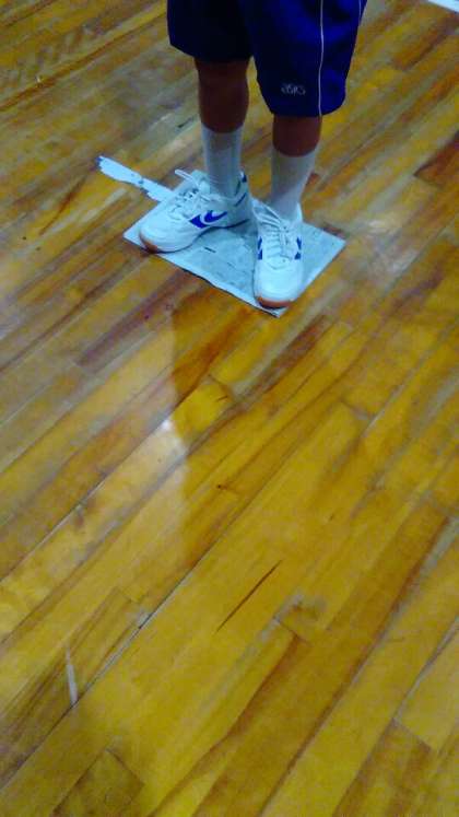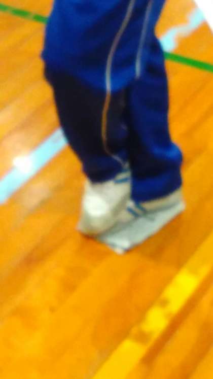 最初の種目はじゃんけんサバイバーです。じゃんけんに負けると足下の新聞紙の面積が小さくなります。