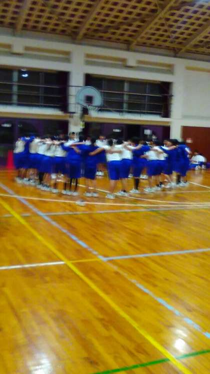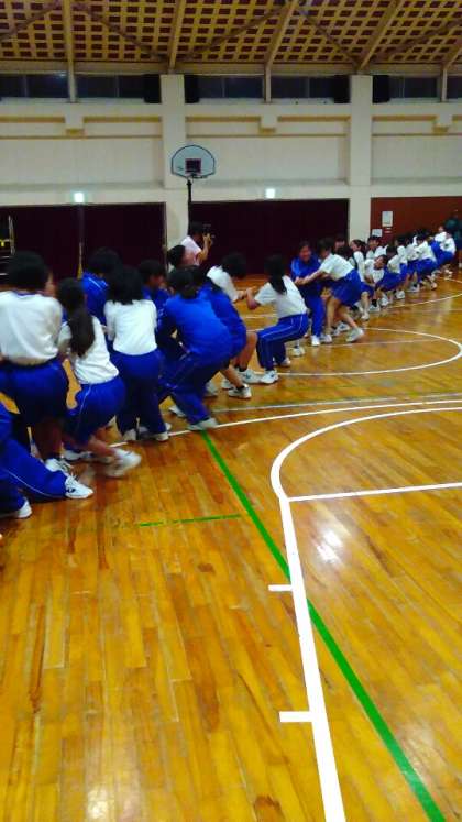 最後の競技 綱引きです。クラスで円陣を組んでいざ勝負。