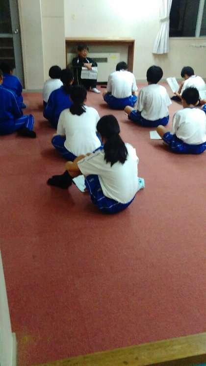 本日の行事メニューは終わり、室長会議が開かれています。外は真っ暗になっています。