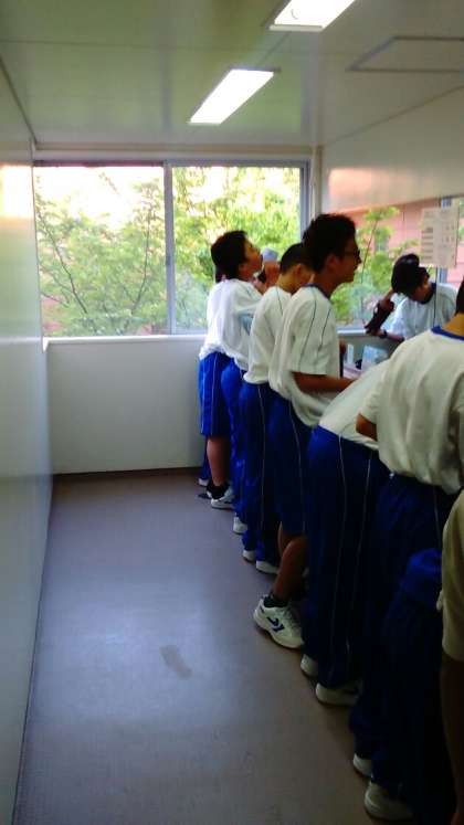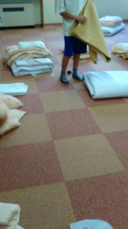 おはようございます。顔を洗って、布団の片付けです。