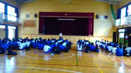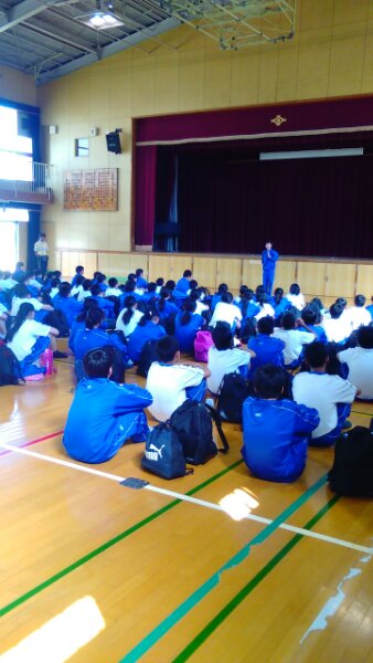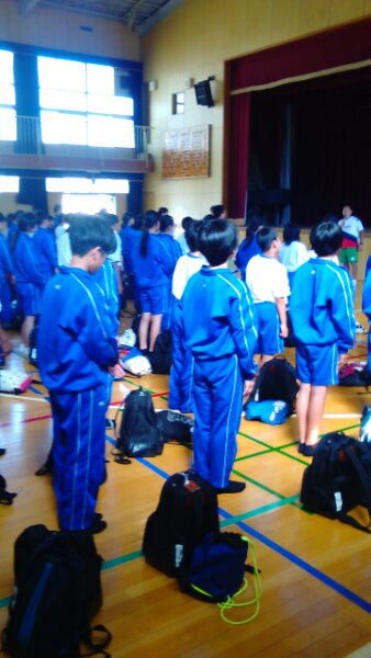 体育館での解散式の様子です。1年生は一泊移住で、ルールやマナー・礼儀・時間を守り、集団生活のなかで仲間の大切さを知り、自然と親しみながらも大きな怪我をすることなく帰ってきました。大きな成果をあげた2日間だったと思います。明日はゆっくり休んで振り返り、明後日からの生活に活かしましょう。