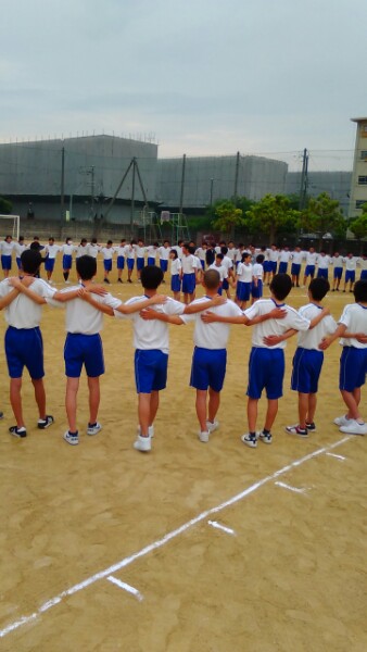 体育委員を中心に円陣を組んで、目標を確認しています。
