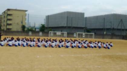 昨日中間テストを終えた3年生は、体育大会に向けて学年練習をしています。