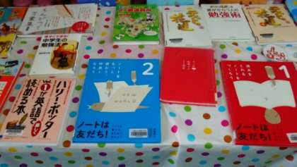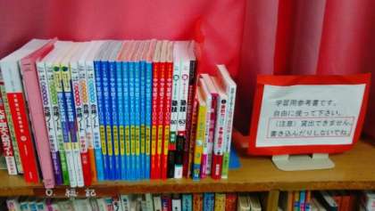 1・2年生は中間テスト前に入っています。図書室では「テスト勉強を楽しくできる本」を置いています。参考書や問題集もあるので、のぞいてみましょう。