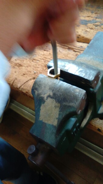2年生の技術の様子です。ものづくりの材料加工で指輪を作製しています。