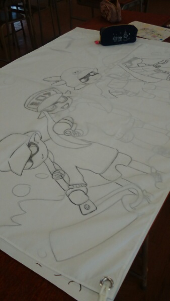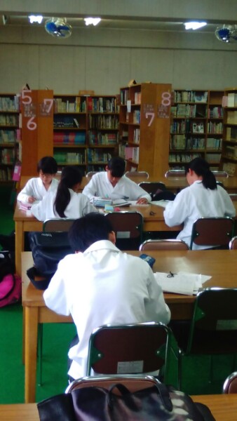 英語検定の対策学習会(受検の級ごとに)、図書室開館の自主学習、学級旗づくり(1年1組)の様子です。