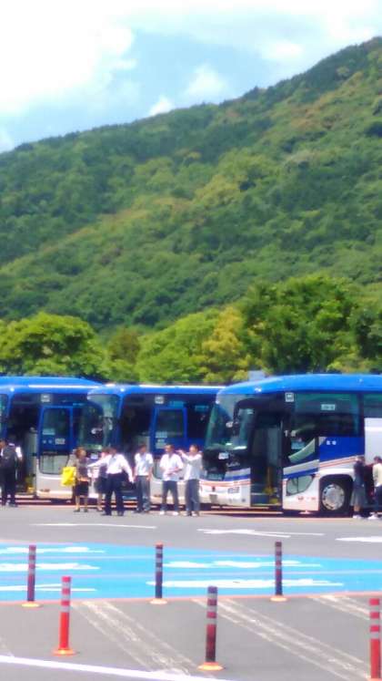 サービスエリアで昼食とトイレ休憩です。バスを降りた瞬間、空気がきれいに感じると話す生徒がいました。