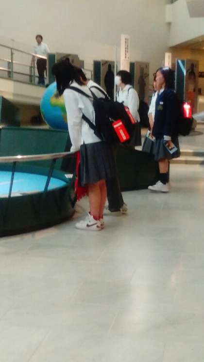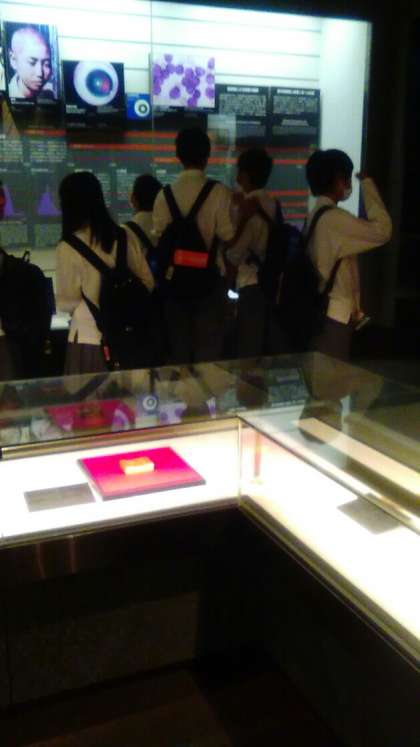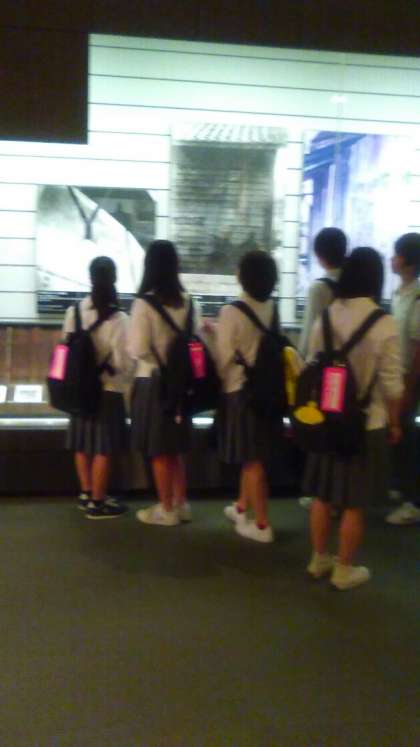多くの展示物をていねいに見ています。戦争、原爆の恐ろしさを学んでいます。