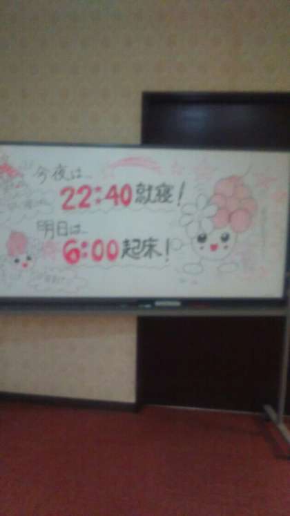 大きな怪我や体調不良もなく、1日目を終えました。明日の起床は6時です。添乗員さんが東淀川区のキャラクターの絵を描いてくれました。お休みなさい。