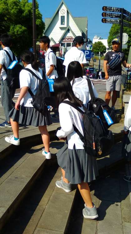 班ごとに長崎市内を観て回ります。大浦天主堂と出島とオランダ坂がチェックポイントです。