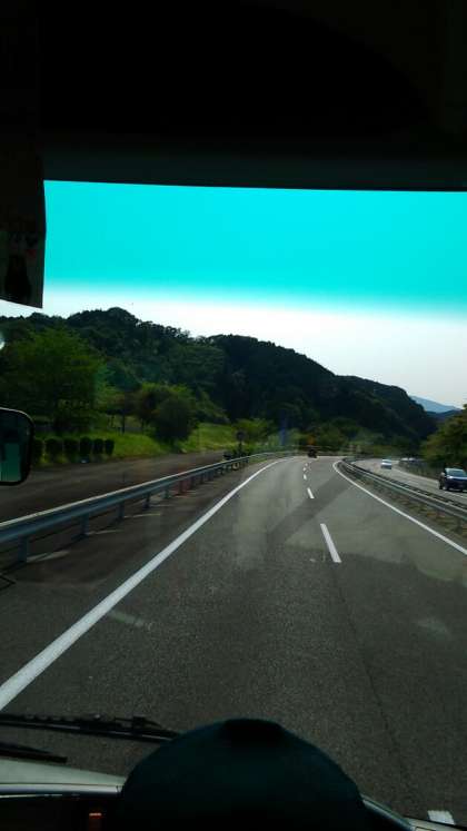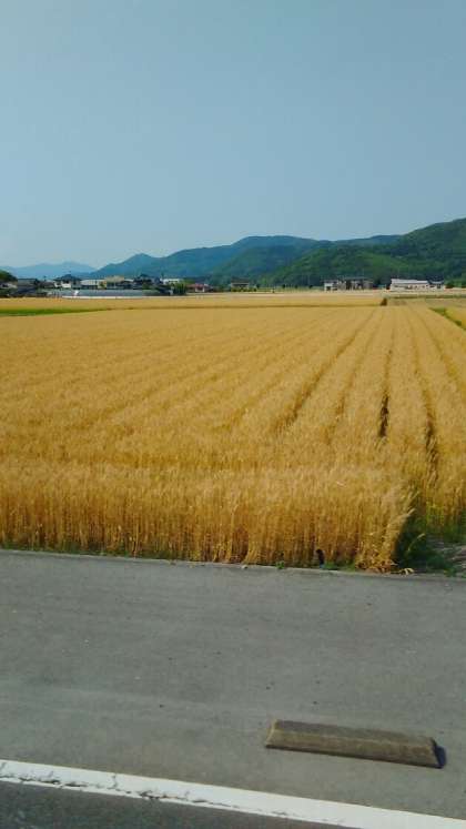 高速道路にのって、お世話になる民泊の地域に向かっています。写真は麦畑です。