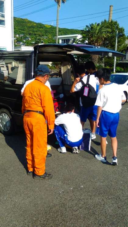 民家の方に車で送っていただき、集合します。