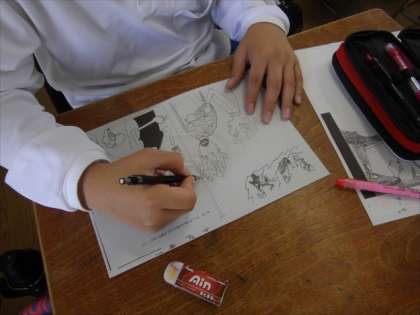 16日(金)5限目1年生の美術の授業です。発想力を育むトレーニングをしました。柔軟なおもしろい絵がたくさん生まれ、和やかな雰囲気で授業が進みました。