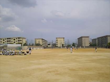グラウンドでは野球部が、瑞光中学校、大淀中学校と3校で練習試合を行っています。体育館では男子バスケットボール部が、京都精華中(京都市1位)、淀川中(大阪市3位)と3校で練習試合を行っています。校舎内では、吹奏楽部がコンクールに向けて練習に励んでいます。
