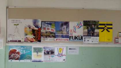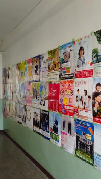 期末懇談が行われています。3年生の3階フロアには高校や専修学校のポスターが掲示してあります。