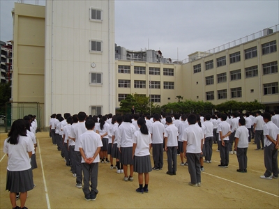 今日の朝はかなり涼しく全校集会も集中して話が聞けました。学校長、生活指導部長、生徒指導主事から話がありました。