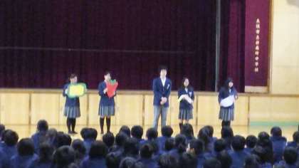 4月9日(水)5,6限、2,3年生が1年生に生徒部活動の様子を紹介をしました。2,3年生は緊張しながらも真剣に紹介し、1年生は楽しそうに見ていました。各部とも工夫を凝らして1年生を勧誘していました。