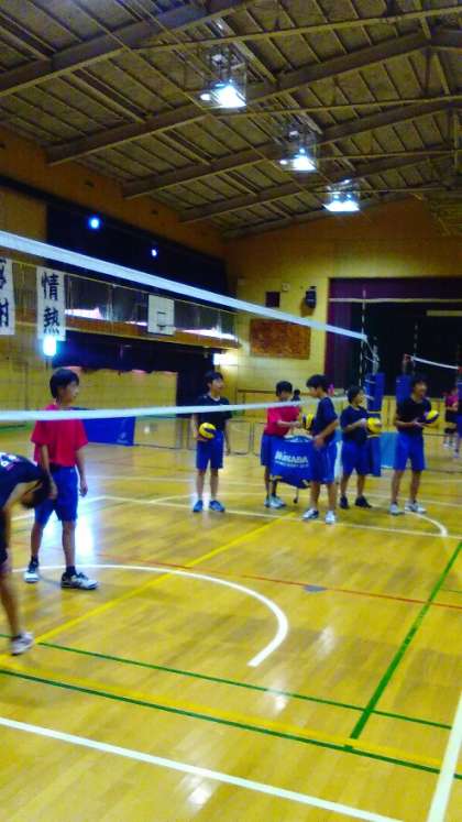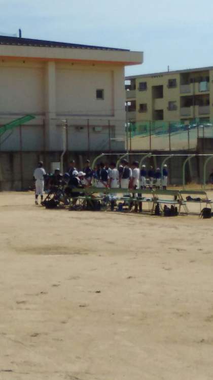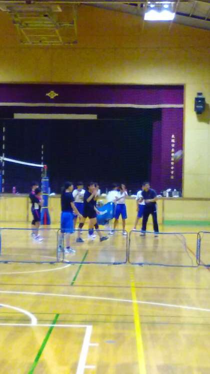 グランドで野球部が練習試合、体育館で男女バレー部が練習、校舎内で吹奏楽部が練習に励んでいます。