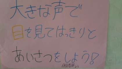 今週は、生徒会・生徒議会が発案した「あいさつキャンペーン」週間です。朝、正門と学校近くの曲がり角では、たくさんの生徒が並んであいさつを交わしていました。全校集会では、生徒会から「朝だけでなく授業の初めと終わりのあいさつもしっかりしましょう」と呼びかけがありました。