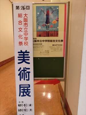 大阪市立中学校総合文化祭の美術展を天王寺にある大阪市立美術館で開催しています。本校1年生の12作品が展示されています。9日(祝)まで展示されています。