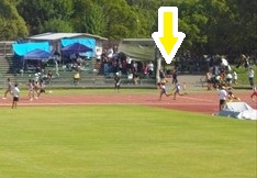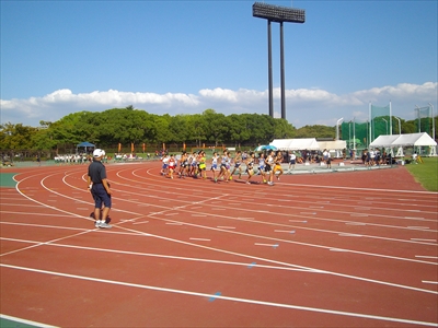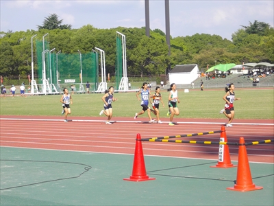 ここまで頑張ってくれた2人の3年生、本当にお疲れ様でした。写真は上から、その2人の3年生でバトンをつないだ4×100mリレーの1走、2走の様子。2年女子800mの様子。1年男子1500m、顧問激励の様子です。上下青のユニフォームです。