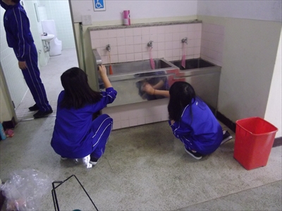 いつもより念入りに掃除です。体育館倉庫もきれいになりました。