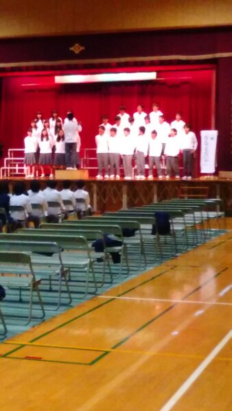 2年合唱コンクールが行われました。課題曲は「SUN」です。写真は1組です。自由曲は「なんでもないや」です。