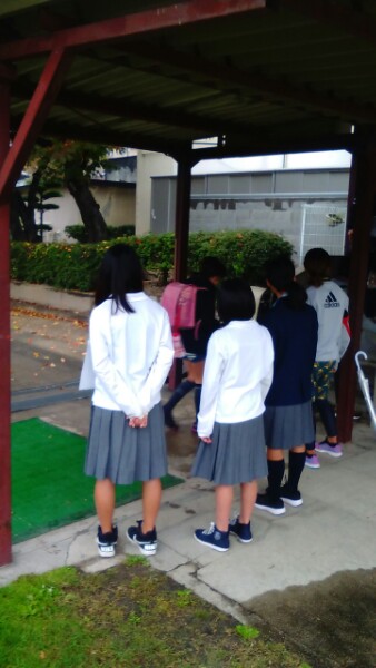 今週は小学校との合同あいさつ運動週間です。中学校の生徒が小学校の正門に出向き、小学校の児童も中学校の正門に来てもらい、朝のあいさつをしています。