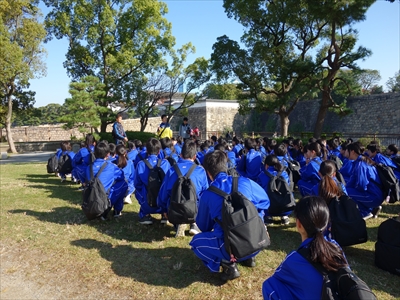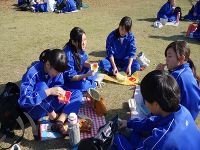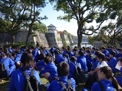 班ごとにタブレットPCを1台持ち、写真を撮り回りました。西の丸庭園をゴールとし、お弁当を食べました。