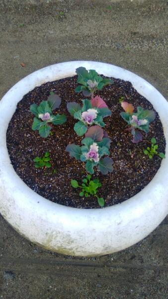地域の方から「葉牡丹」をたくさんいただきました。ありがとうございます。校舎の北側に植えています。