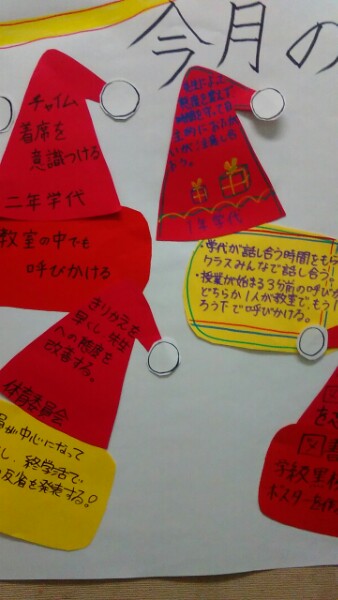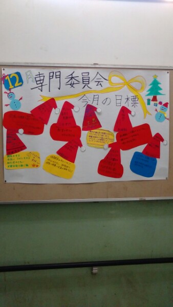 12月の生徒専門委員会の目標が掲示されました。各委員会から具体的な取り組みを示してあります。
