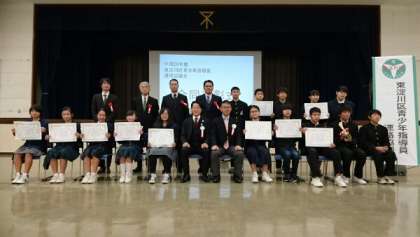 土曜日に東淀川区青少年指導員連絡協議会の合同表彰式が行われました。井高野中学校からはソフトボール男子が準優勝、市の大会に出場したキックベースボール女子が敢闘賞を受賞しました。また、「絆」をテーマにした絵画コンクールの部で優秀賞を獲得しました。