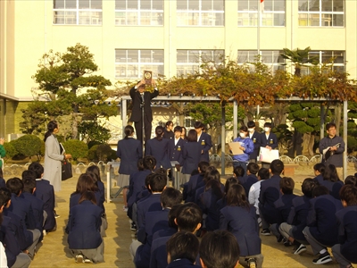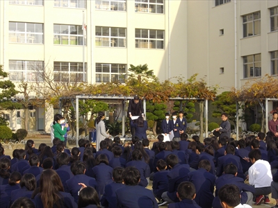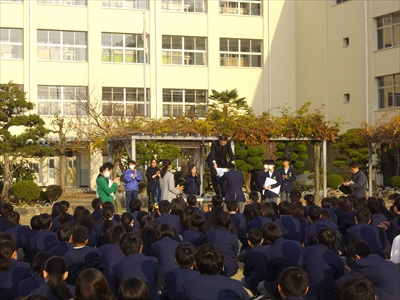 11日(月)全校集会で各種表彰を行いました。税の作文、区の人権標語、青少年指導員主催の絵画コンクール、キックベースボール等よくがんばりました。〔写真は、上から税の作文、人権標語、絵画の表彰の様子です〕