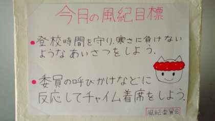 1月の専門委員会からの掲示物です。あいさつキャンペーンは明日が最終日です。寒さに負けないようなあいさつをしよう!