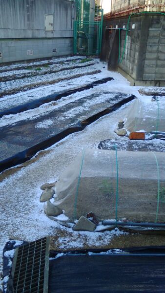 午後、集中的に雪が降り、庭や畑に積もりました。
