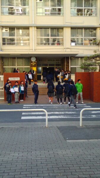 今週は小学校と中学校が一緒にあいさつ運動に取り組む週間です。井高野小学校と東井高野小学校の児童が、中学校の正門であいさつを交わしてくれました。
