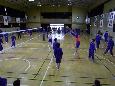 1年生は体育館でバレーボールを行いました。どの試合も熱戦が繰り広げられましたが、最終的に総合優勝は3組が手にしました。