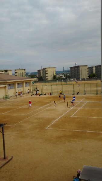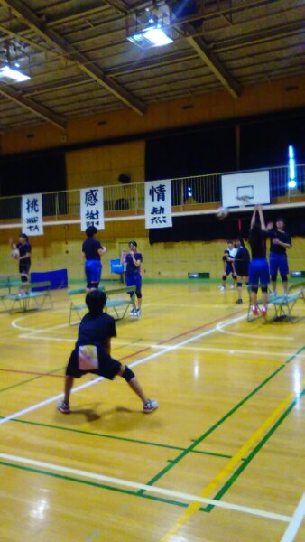 午後の部活動の様子です。グランドではソフトテニス部が練習試合を、野球部・サッカー部が練習をしています。体育館では、男女バレー部が練習をしています。