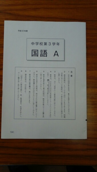 今日は3年生が「全国学力・学習状況調査」を受けています。国語AB,数学AB,理科の問題に取り組みました。