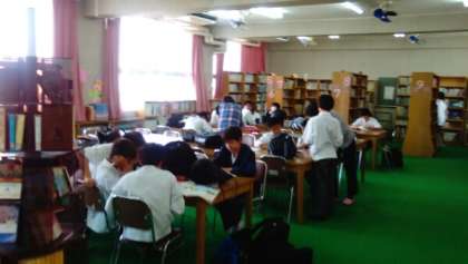 放課後の元気アップ学習会です。明日から2・3年生は中間テストです。