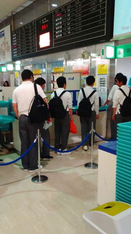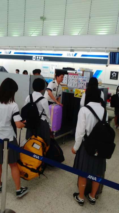 飛行機に乗る手続きをしています。ちょっと緊張。