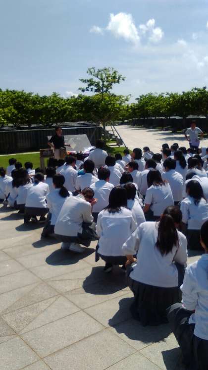 平和への想いをこめて、メッセージを発信し折り鶴を捧げ、黙祷しました。