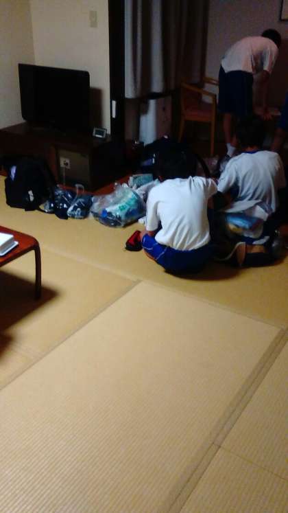 部屋の様子です。順番に部屋のお風呂に入っています。
