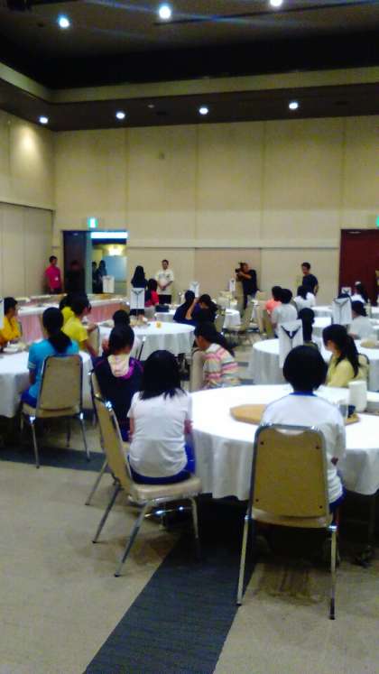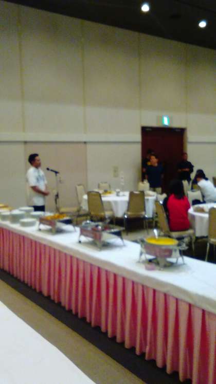 退所式でホテルの人にお礼を言い、あいさつをいただきました。