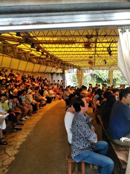 民家の人におきなわワールドに連れて行ってもらいました。エイサーのショー(撮影禁止)を見ているところです。
