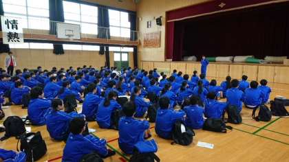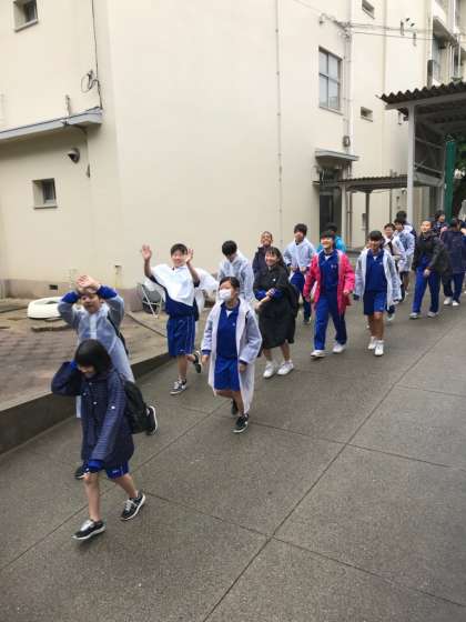 本日は、あいにくの空模様ですが、2年生は校外学習(わくわくの郷)に出発しました。