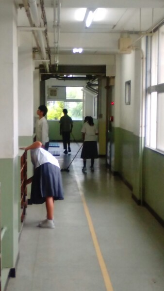 今日は生徒専門委員会です。各委員会で、学校を良くするために話し合いを行っています。美化委員会と保健委員会は清掃活動を行っています。