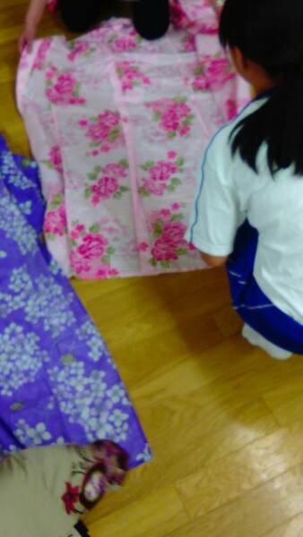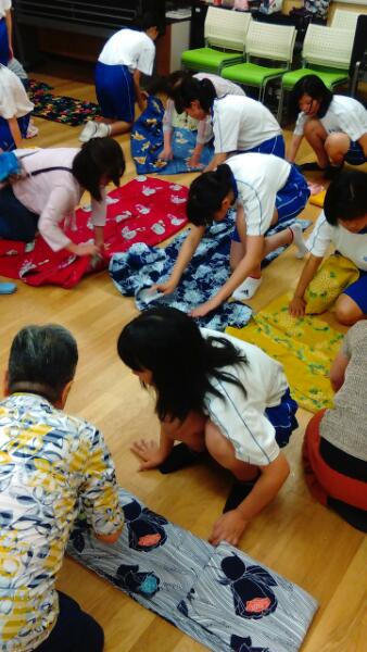 盆踊りの後、浴衣のたたみ方を教えていただきました。