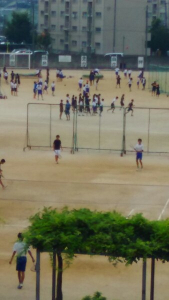 グランドでは陸上部が7中学校集まって合同練習をしています。手前はソフトテニス部です。