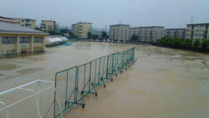 雨がかなり降っているので、グランドは水びたしの状態です。明日の朝方には、いったん雨が止む予報なので、明日の体育大会は行う予定です。